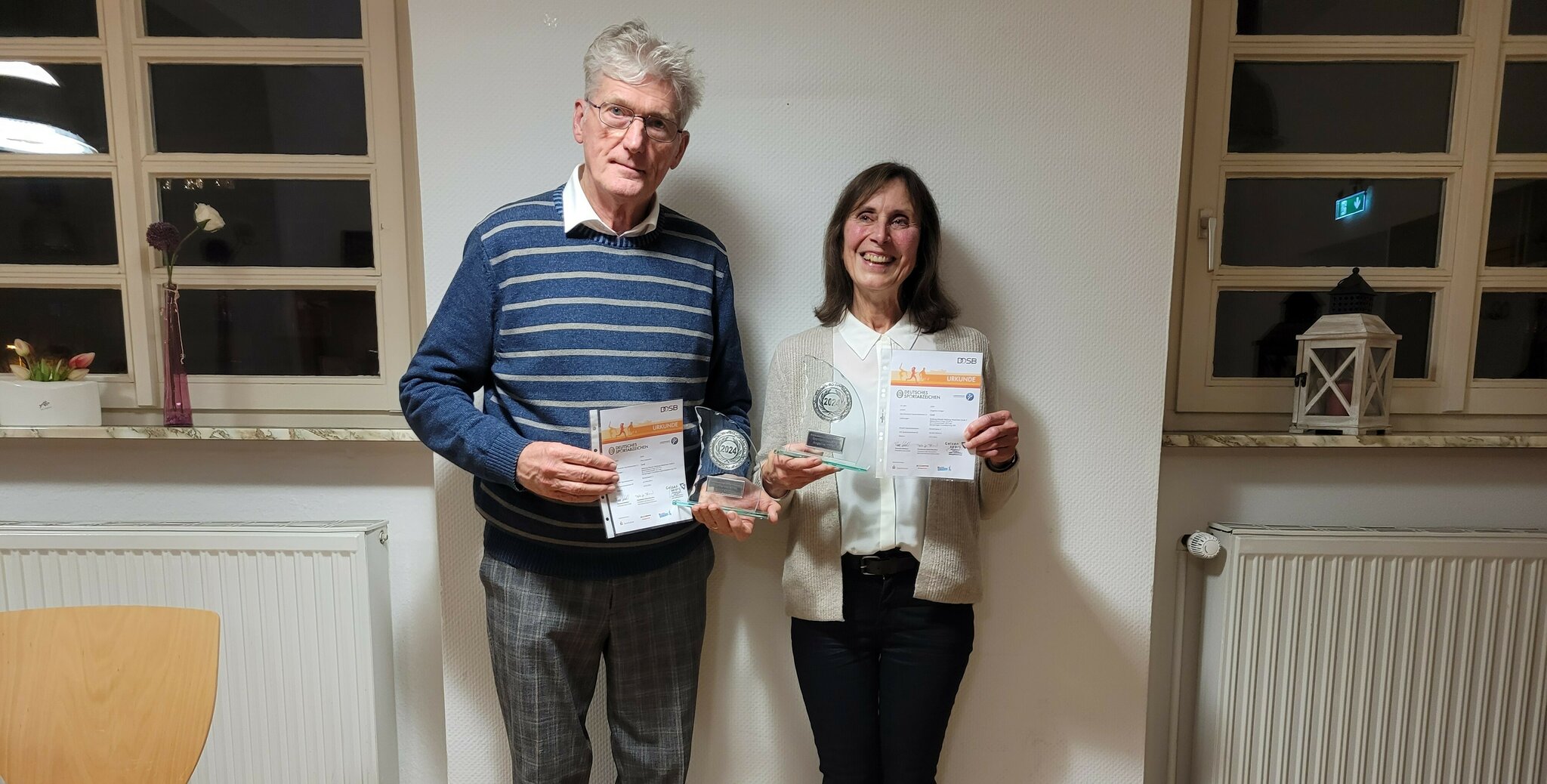 Bei der Jahresabschlussfeier wurde Angelika Krüger als „Sportlerin des Jahres“ im Verein mit einem Pokal ausgezeichnet. Der Gesamtvorstand würdigte damit sowohl den Trainingsfleiß als auch ihr sportliches Verhalten. Sie trainiert intensiv in der Gymnastik- und Walkinggruppe. 2024 machte sie ihren ersten Walking-Wettbewerb und hat bei weiteren Walking-Veranstaltungen sehr gute Platzierungen erreicht. Darüber hinaus schaffte sie zum 3. Mal das Walking-Abzeichen der Stufe 3