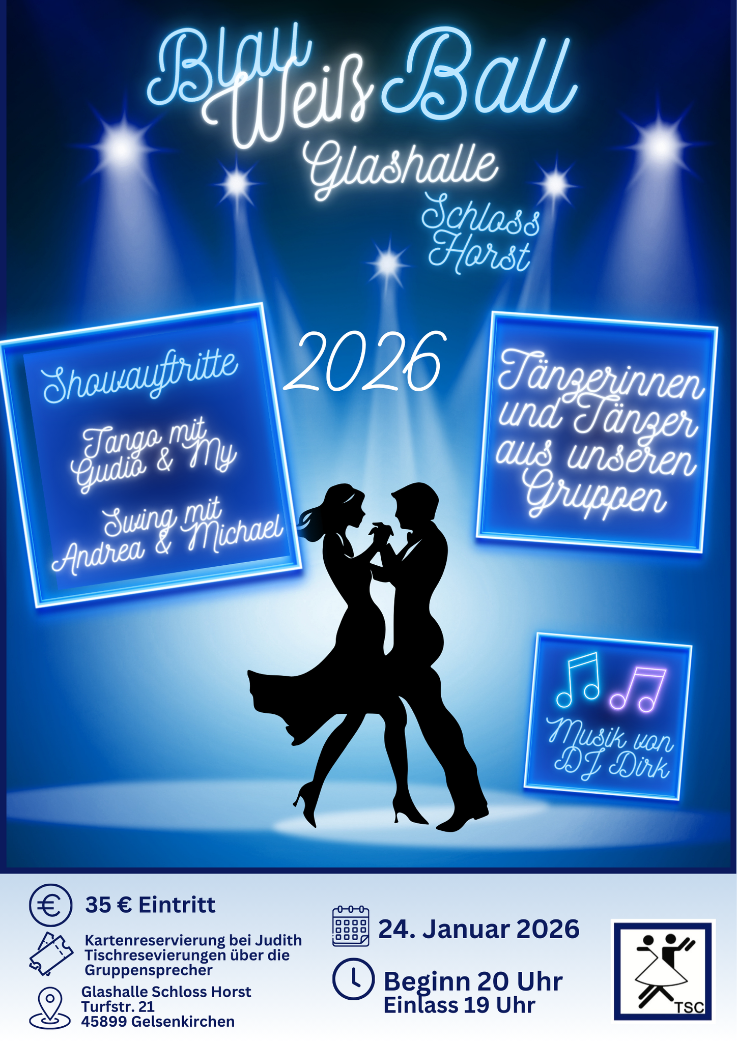Gala-Ball des TSC Blau-Weiß Gelsenkirchen: Gala-Ball am 24. Januar 2026 – Lokalkompass Dezember 8, 2025 admin Uncategorized 0 Gala-Ball des TSC Blau-Weiß Gelsenkirchen: Gala-Ball am 24. Januar 2026 Lokalkompasssource
