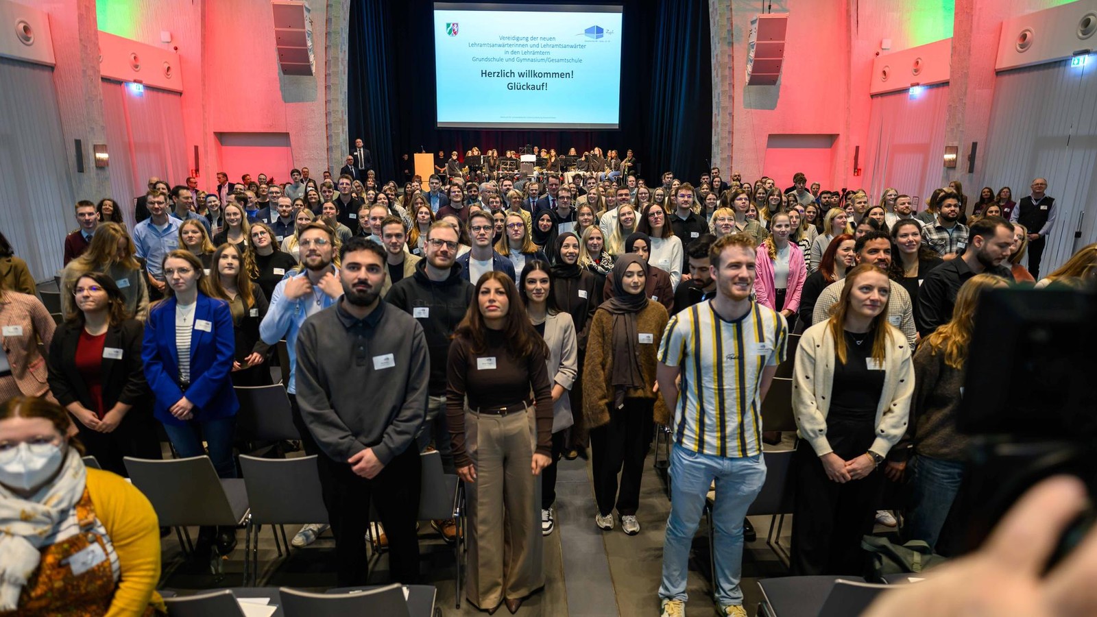 Es war ein besonderer Moment vor besonderer Kulisse, der den knapp 200 angehenden Lehrerinnen und Lehrern sicherlich in Erinnerung bleiben wird: Feierlich wurden sie jetzt in der Ückendorfer Heilig-Kreuz-Kirche in Gelsenkirchen willkommen geheißen und im Beisein von NRW-Ministerpräsident Hendrik Wüst und NRW-Schulministerin Dorothee Feller vereidigt – ein Zeichen der „Wertschätzung“, wie es von offizieller Stelle heißt. Wüst wurde in seiner Ansprache dann auch dementsprechend feierlich: „Ganz herzlich willkommen im Dienst der Zukunft dieses Landes, ganz herzlich willkommen im Team Nordrhein-Westfalen“, gab er den Lehramtsanwärterinnen und Lehramtsanwärtern (LAA) mit auf den Weg.