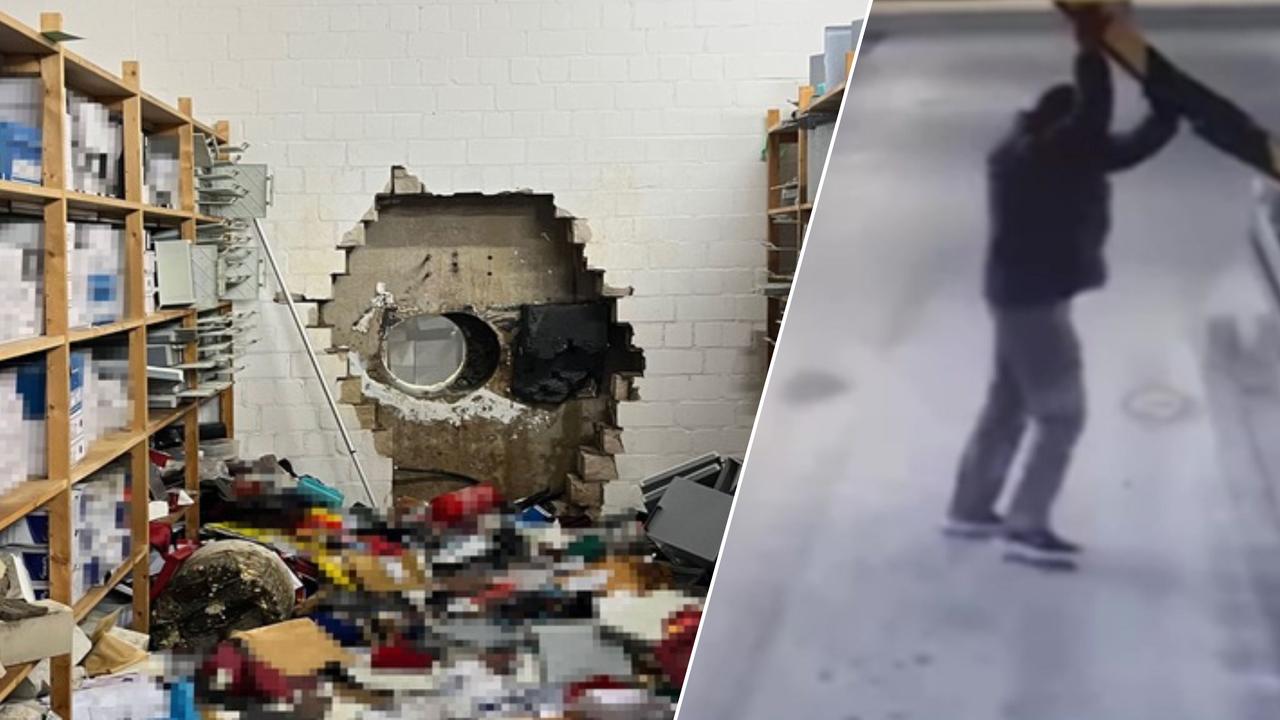 Loch in der Wand des Kellers einer Bankfiliale in Gelsenkirchen