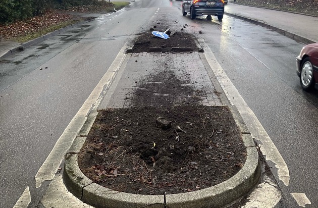 Eine Autofahrerin informierte die Einsatzleitstelle der Polizei am Mittwochmorgen, 11. Februar 2026, gegen 8.30 Uhr über einen Unfall auf der Middelicher Straße in Erle. Eine 47-jährige Frau aus Schermbeck war kurz vorher mit ihrem Auto über die Middelicher Straße gefahren und hatte eine Verkehrsinsel an einem Fußgängerüberweg übersehen, woraufhin zwei ihrer Reifen platzten. Sie hielt an und stellte fest, dass kurz vor ihrem Unfall bereits ein weiteres Fahrzeug über die Verkehrsinsel gefahren sein musste. Die fehlende Beschilderung war anscheinend darauf zurückzuführen, dass ein anderer Verkehrsteilnehmer über die Verkehrsinsel gefahren war und die darauf befindlichen Schilder umgefahren hatte. Diese waren aus den Fundamenten gerissen und befanden sich, zusammen mit einem fremden Autokennzeichen, am Unfallort. Die 47-Jährige hatte vor dem Eintreffen der Polizeibeamten einen schwarzen Opel mit Unfallschäden und dessen Fahrer an der Unfallörtlichkeit beobachtet. Genau dieser Opel kam den Beamten während der Unfallaufnahme entgegen und wurde umgehend angehalten. An dem Fahrzeug fehlte ein Kennzeichen. Das noch vorhandene Kennzeichen war das Gegenstück zu dem am Unfallort zurückgebliebenen. Während der Gesprächsführung mit dem Opel-Fahrer ergaben sich Hinweise auf den Konsum von Alkohol. Ein freiwilliger Atemalkoholtest bestätigte diesen Verdacht. Der 54-jährige Gelsenkirchener wurde zur Polizeiwache gebracht, wo ihm ein Arzt eine Blutprobe entnahm.